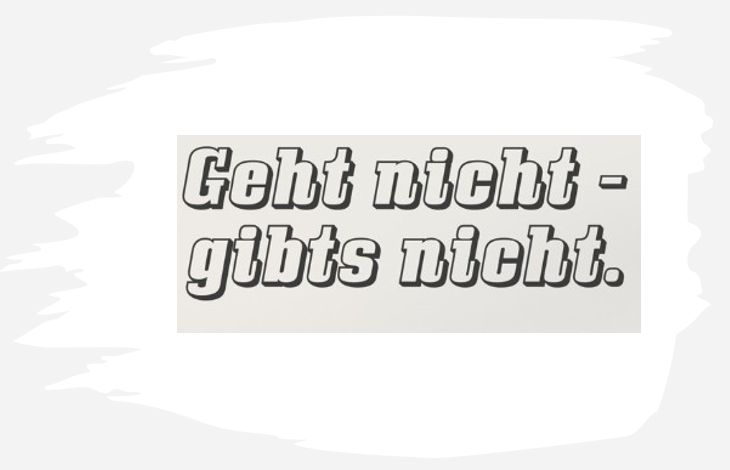 „Geht nicht, gibt's nicht“ ist ein bekannter deutscher Ausdruck, der oft verwendet wird, um eine positive Einstellung und Entschlossenheit auszudrücken. Er vermittelt die Botschaft, dass man Herausforderungen mit Kreativität und Engagement begegnen sollte, anstatt aufzugeben. Dieses Motto inspiriert viele Menschen, in schwierigen Situationen nach Lösungen zu suchen und das Unmögliche möglich zu machen. Es erinnert uns daran, dass Einstellung und Beharrlichkeit oft der Schlüssel zum Erfolg sind, egal wie unmöglich die Aufgabe erscheinen mag.